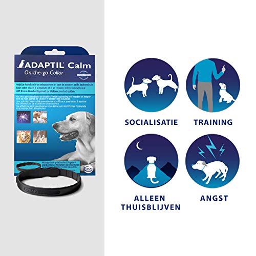 - Easy to use; simply put your ADAPTIL Calming Collar on your dog and the body heat will activate the calming pheromones, collar will last for 30 days