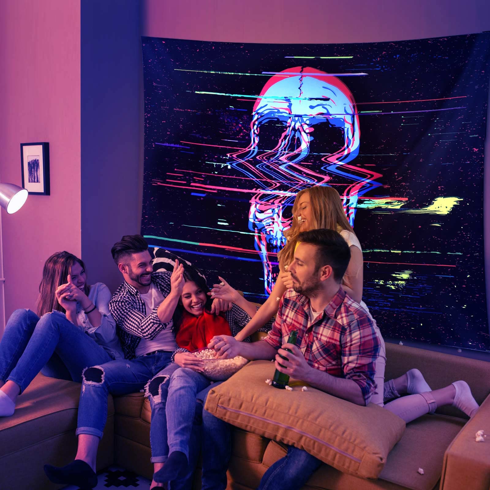 - Original Tapestries – Blacklight Skull Tapestry, Black Tapestry Glow In The Dark, UV Reactive Black Light Tapestries Posters Wall Hanging for Bedroom Living Room Party Backdrop Decor(30 * 40inches) by ADDWel
