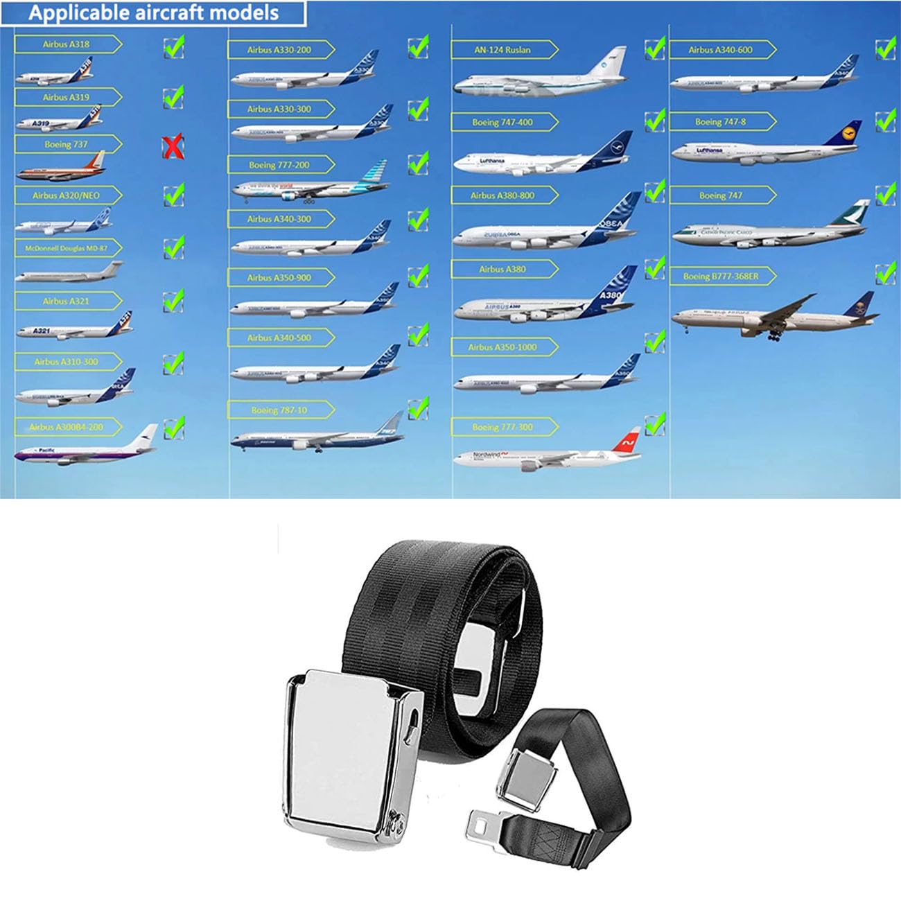 - 1.Widely Compatible: This extender is for airplanes seat belt,which is the most common in North American airplanes as well as other airlines globally. Fits most of airplane seat belts, except for Southwest Airlines airplanes.