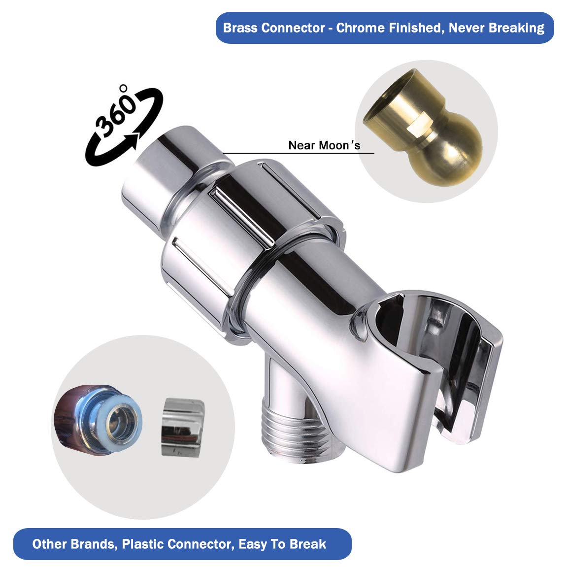 - Adjustable Angle Bracket - With 360° rotation angle of the swivel ball joint, easy to change the water flow direction, get the right shower angle.