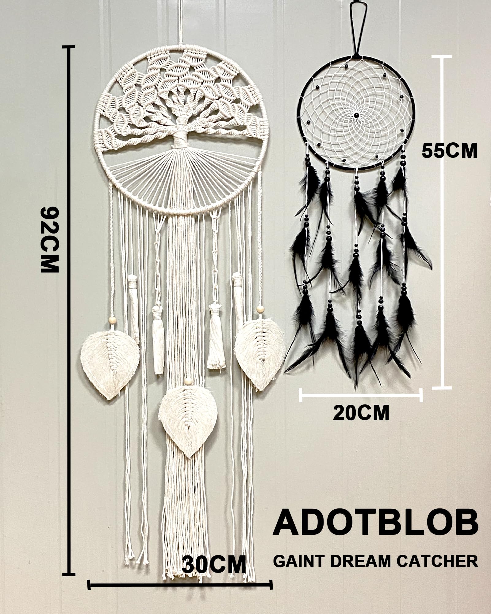 - Large Dream Catcher: Tree of life dream catcher is 37.8 inches from top to bottom, made of 11.8 inches diameter metal ring (96 cm x 30 cm). Cotton yards material with white color. Contain 1 x finished tree of life dream catcher, 1x original design gift box.