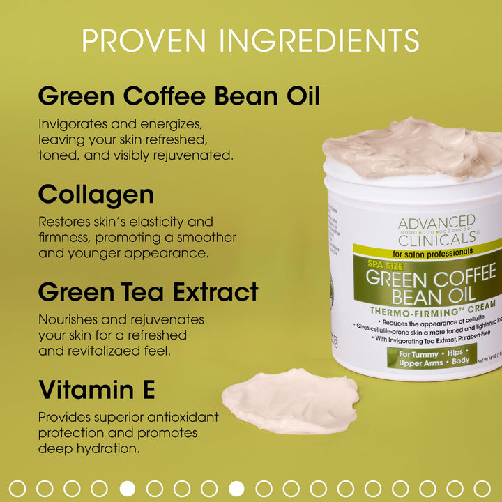 - Original Creams – Green Coffee Bean Thermo Firming Body Cream, Anti Cellulite Cream, Caffeine Body Lotion Moisturizer To Firm, Tighten, & Hydrate Look Of Legs, Arms, Tummy, Butt, & Thighs, 16 Oz by Advanced Clinicals