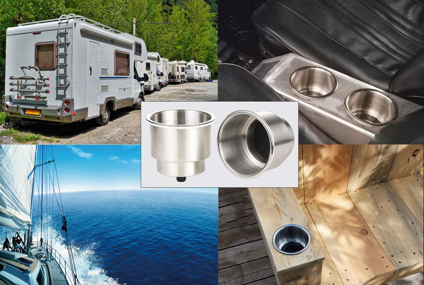 - Original Cup Holders – 4 Height Boat Cup Holder Stainless Steel Recessed Drink Holders RV Inset Pontoon Cup Holder with Drain for Ships Sofa Car Table Recliner Camper (2pcs) by Aeafaryne