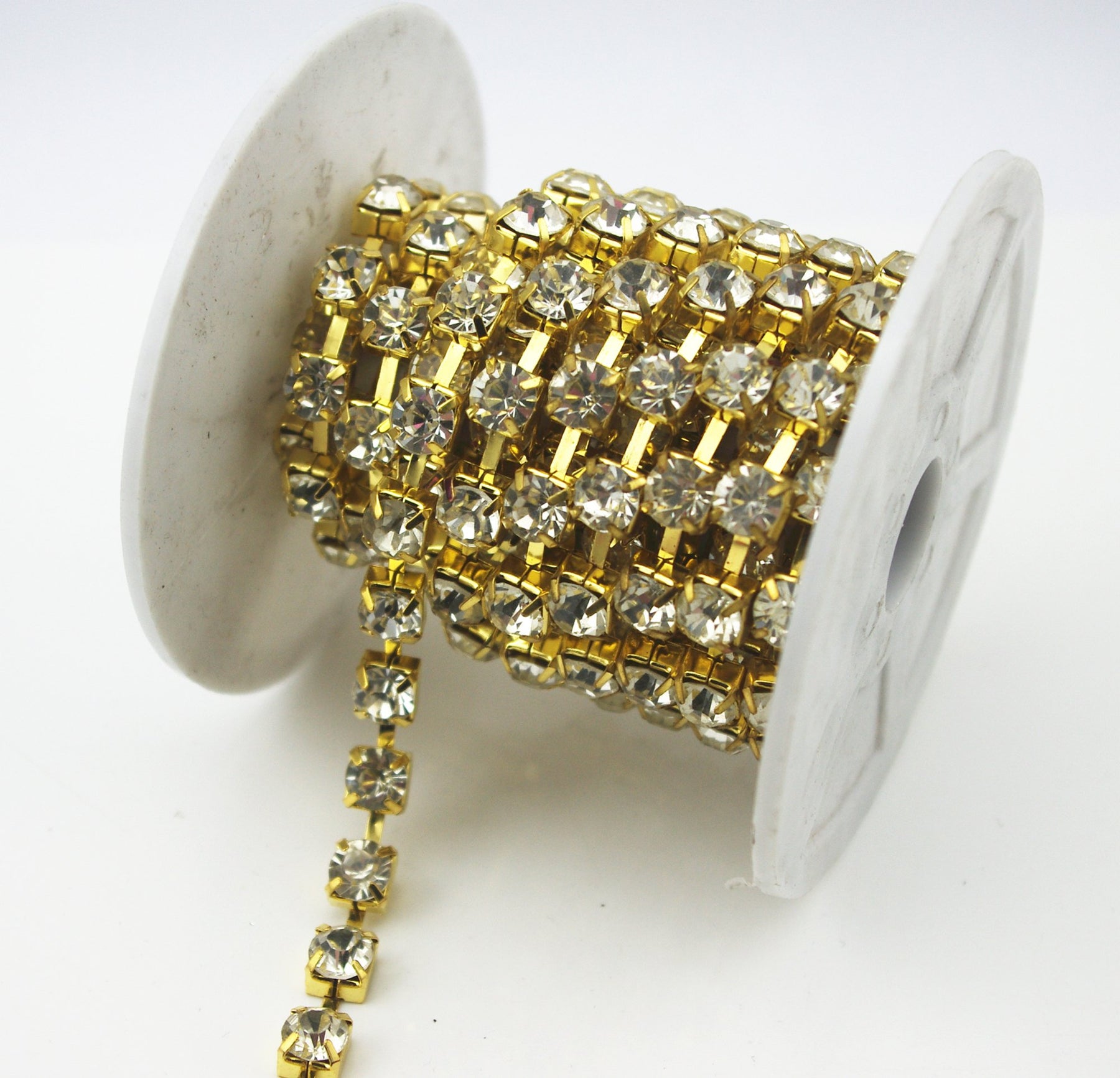 - Original Beaded Trim – 1 Yard 8mm Crystal Rhinestone Trims Chain Wedding Dress Sewing Craft Embellishments (Gold+Clear Rhinestone Chain) by AEAOA