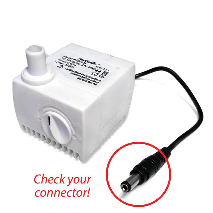 - Check the connector and/or model # on your current pump to be sure this is the right pump for your AeroGarden