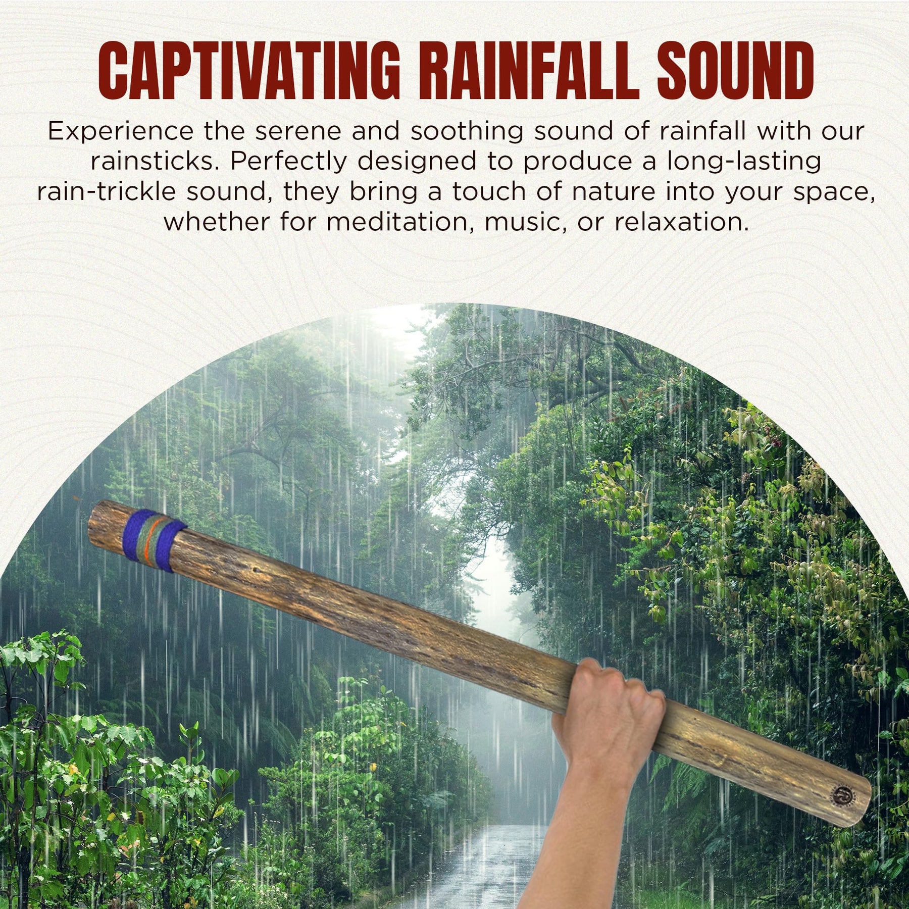 - HERITAGE HANDCRAFTED IN CHILE - Each 30 rainstick is handcrafted by native artisans from Chile using the naturally grown Copado cactus found in the deserts of Chile, South America. This ensures both musical quality and durability. The process includes hollowing out the cactus, which has matured over decades, and inserting spines and pebbles to create its distinctive rainfall sound.