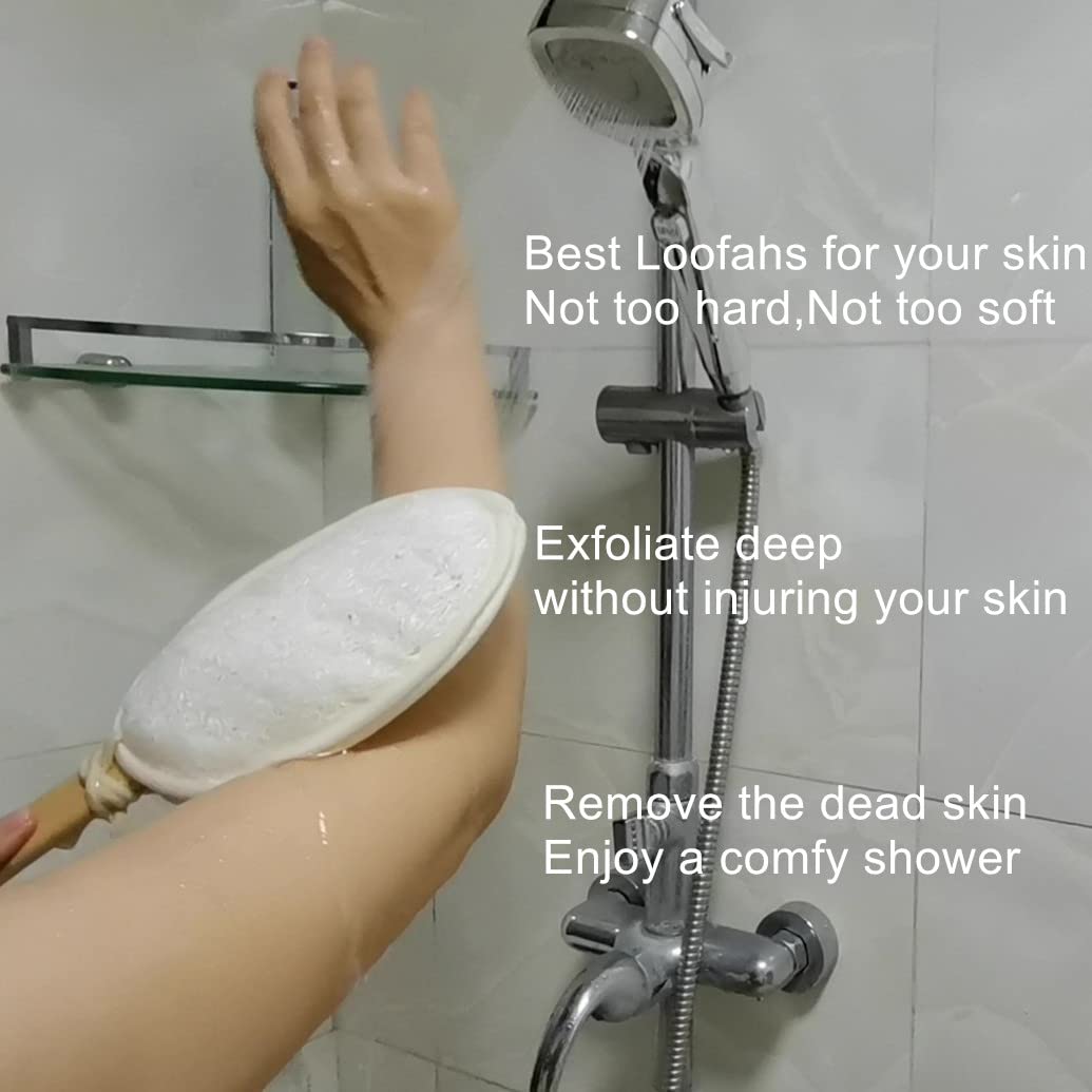 - EASY TO USE AND DAILY MAINTENANCE - The loofah will become soft in water in a few seconds,and then you can use it.Wash and hang somewhere for drying after shower finishing. We recommend hanging it in the sun monthly and replacing the loofah every 3-6 months.
