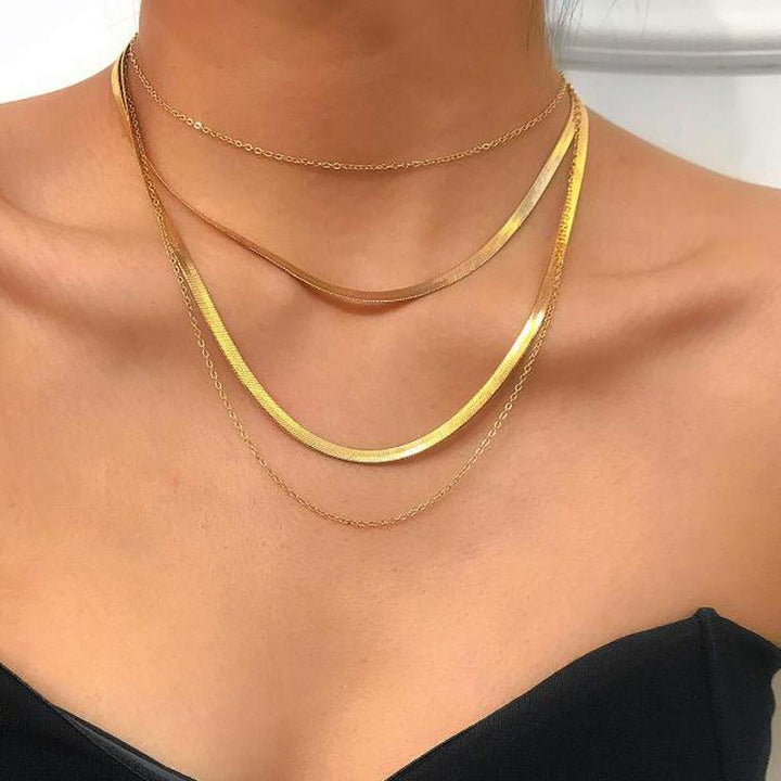 - Original Chokers – Italian Layered Flat Herringbone Chain Choker Necklace Snake Magic Necklace Prom Party Festival Accessories for Women(Gold) by Aimimier