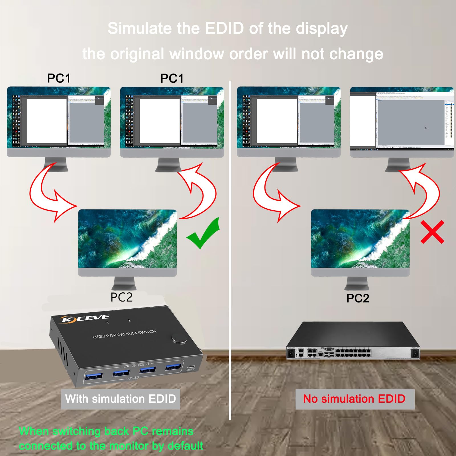 - Worry-free after-sales service: The bottom of the KVM switch has non-slip rubber feet, so it can be placed anywhere without scratching your property. As professional manufacturer, every kit is tested strictly before delivery, If there is any problem with the HDMI Switch received, We offer you replacement.