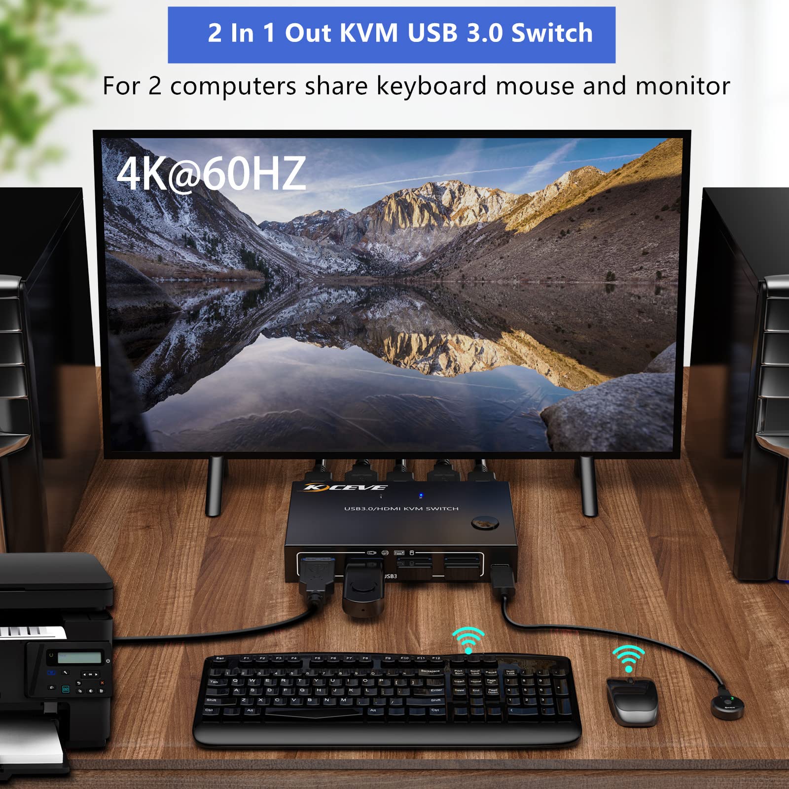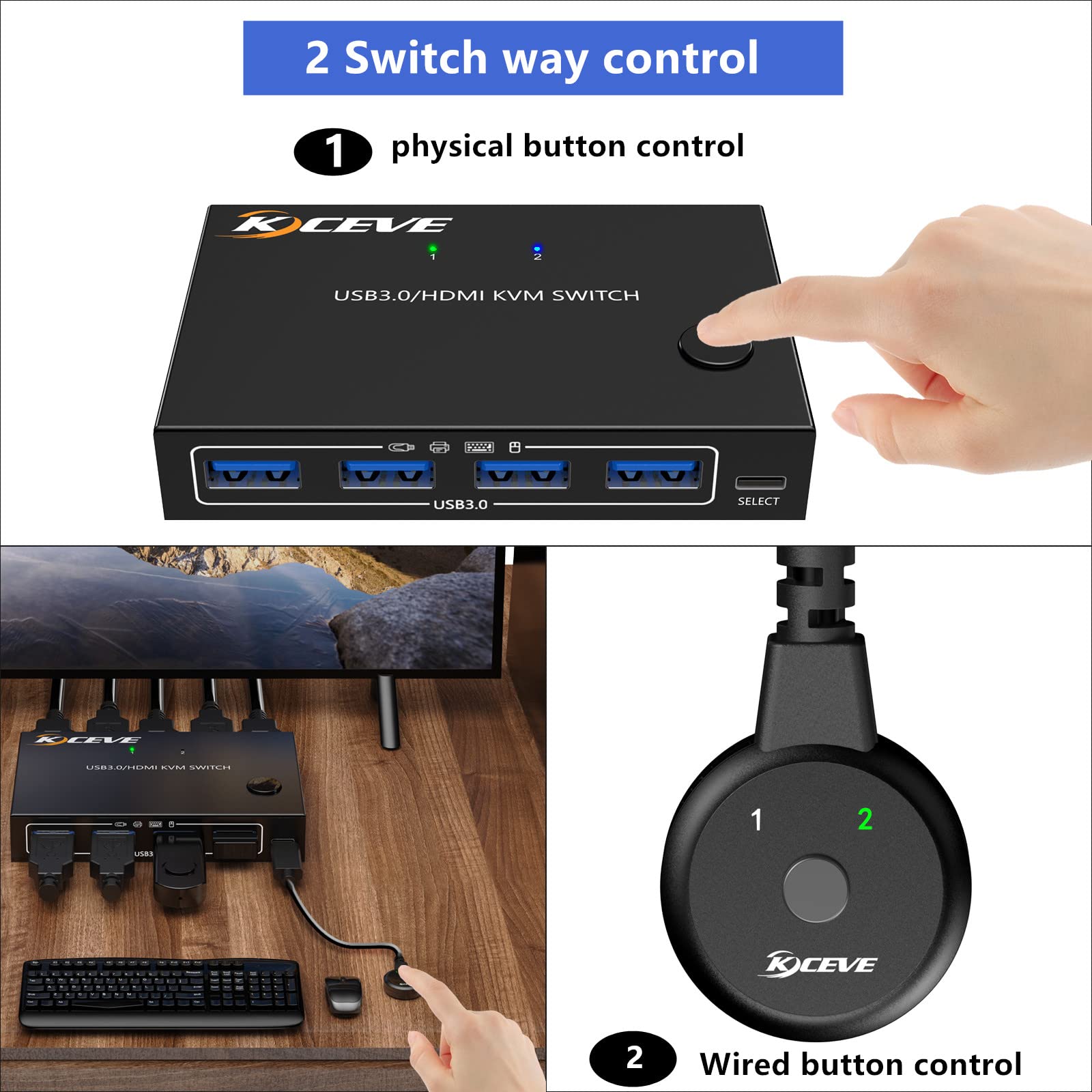 - Original KVM Switches – KVM Switch 2 Ports, HDMI USB KVM Switcher Support Keyboard Hotkey Switch Way, for 2PC Share One Keyboard Mouse and Monitor, HUD 4K (3840x2160) Supported by AIMOS