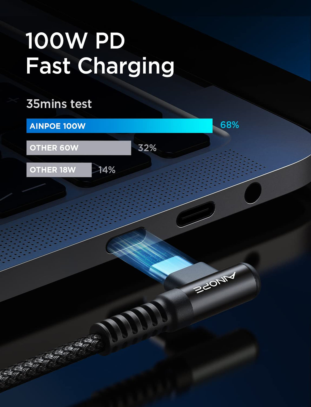 - [UNIQUE E-MARK SMART CHIP] Ainope 100W super fast charging USB C cable is build in the best power delivery E-Mark chip, which supports USB PD fast charging and provides comprehensive protection to devices battery and adapters, keep you in light-speed charging and safe