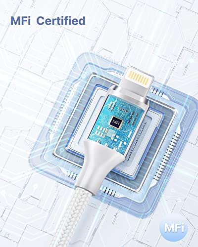 - MFi Certified Lightning Cable: Each USB A to lightning cable is built-in MFi chip, no safety warning message pops up when in use