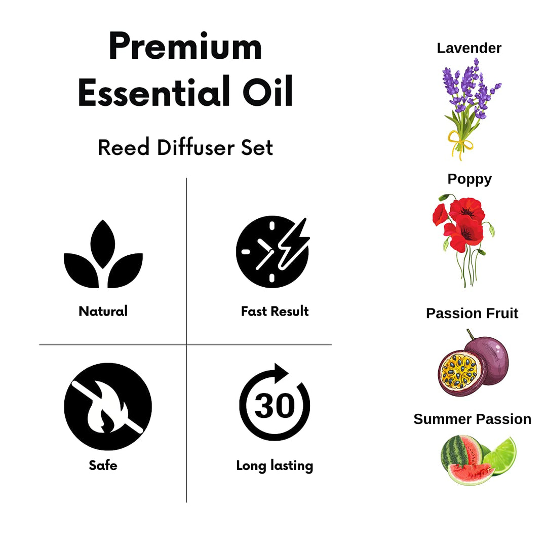 - Safe and Easy to Use: No flame required. Remove cap and place sticks in the diffuser. Reeds absorb the scented oil.Fragrance oil is gently diffused through reed sticks.