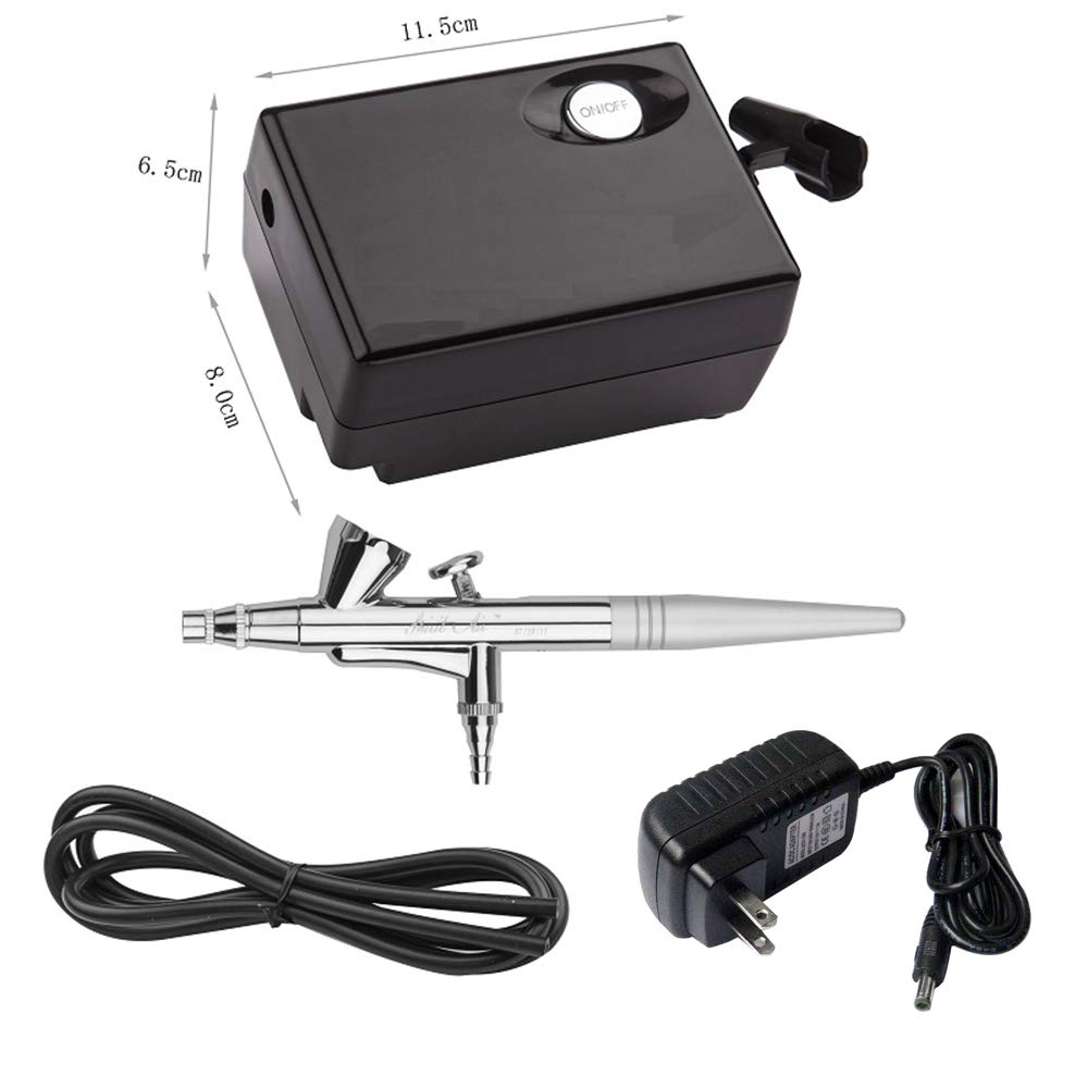 - Package Included: 1* Airbrush Spray Gun with 2cc pray bottle; 1* Mini Air Compressor for 3 mode adjustable; 1* Air Hose; 1* Power Adaptor.