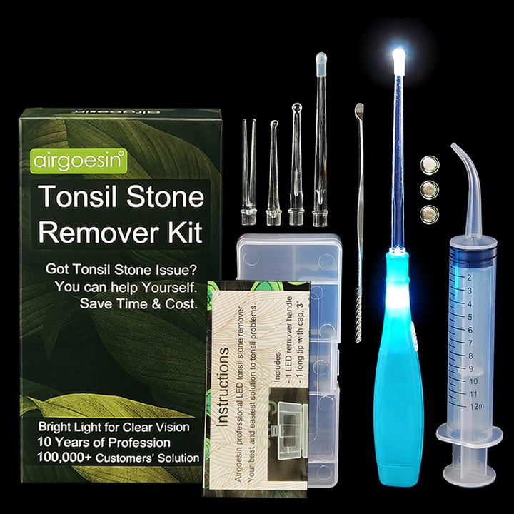 - Original Dental Care Kits – Airgoesin™ Upgraded Tonsil Stone Remover Tool, Blue, 5 Tips, Tonsillolith Pick Case + 1 Irrigator Fresh Breath Oral Rinse by airgoesin
