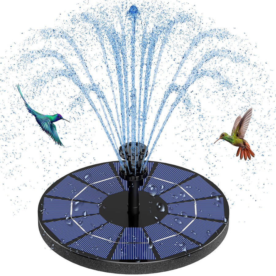 - [?Eco-friendly And Multi-application]: This solar fountain does not need any additional power supply, very environmentally friendly. This environmentally friendly solar fountain has a diameter of 7.8 inches, which is very suitable for bird baths, fish tanks, ponds, swimming pools, gardens and outdoors. This fountain will attract hummingbirds and it is very interesting.