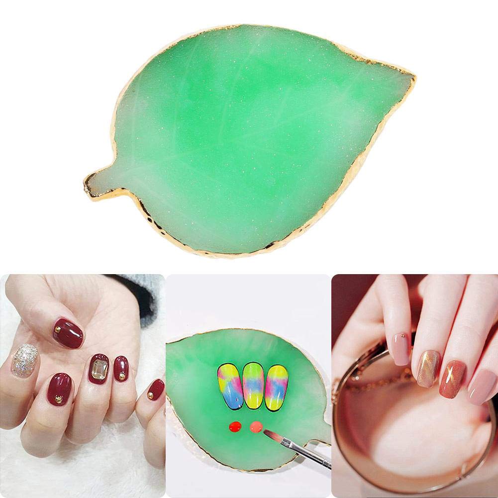 - Original Decoration Kits – 1 Pack Nail Leaves Palette Resin Agate Gold Trim Paint Palette Crystal Rim Shooting Prop Nail Display Board Tool (Green) by AKOAK
