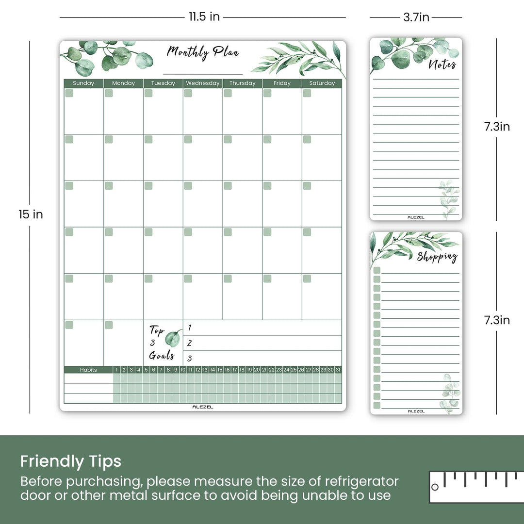 - Original Planning Boards – Magnetic Dry Erase Calendar for Fridge, Greenery Monthly Fridge Calendar Whiteboard Set - Vertical Monthly Calendar for Refrigerator, Grocery & to Do List White Board, 3 Markers + Eraser by ALEZEL