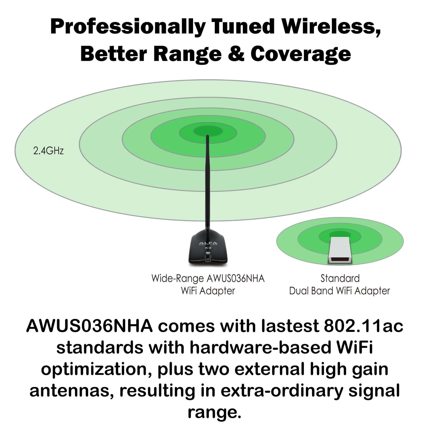 - Original USB Network Adapters – AWUS036NHA High Gain Wireless B/G/N USB Adaptor - Long-Rang Wi-Fi Network Adapter with 5dBi and 9dBi Antenna for Wardriving & Range Extension - Windows 7, XP/Vista 64-Bit /128-Bit - Atheros by Alfa