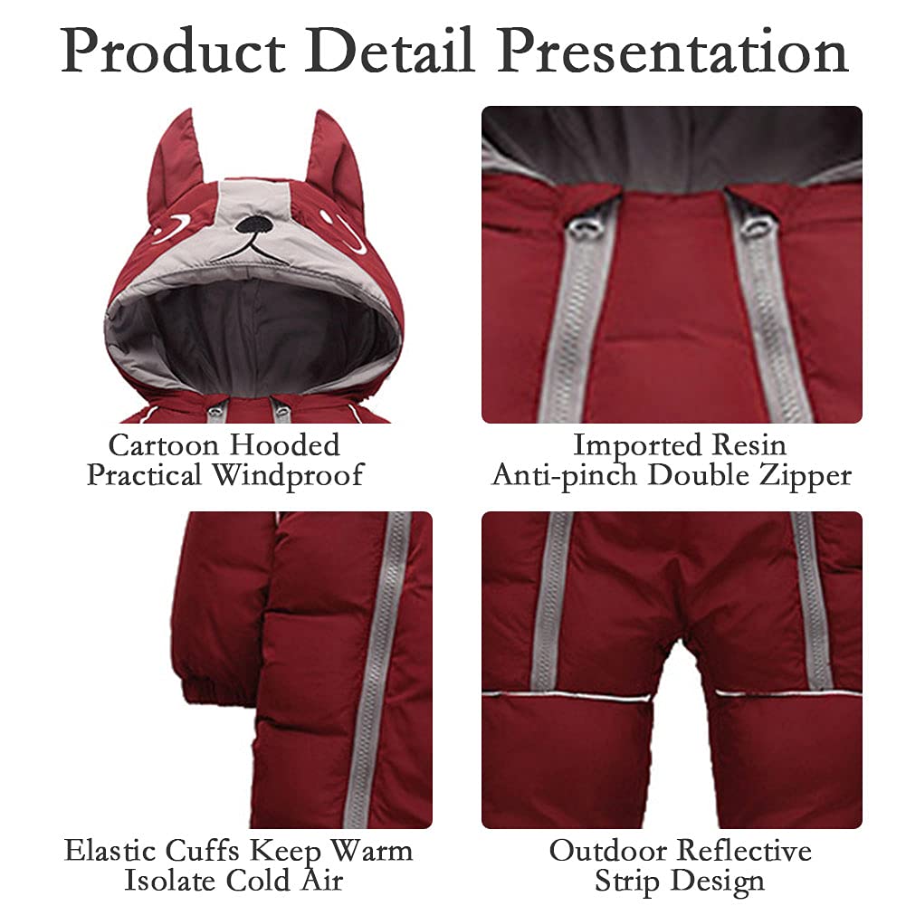 - Unique DesignThe snowsuit winter coat is designed with a cartoon dog print, full of personality and fashion. Double-layer zipper anti-pinch design for easy wear, while enhancing the design of the outwear