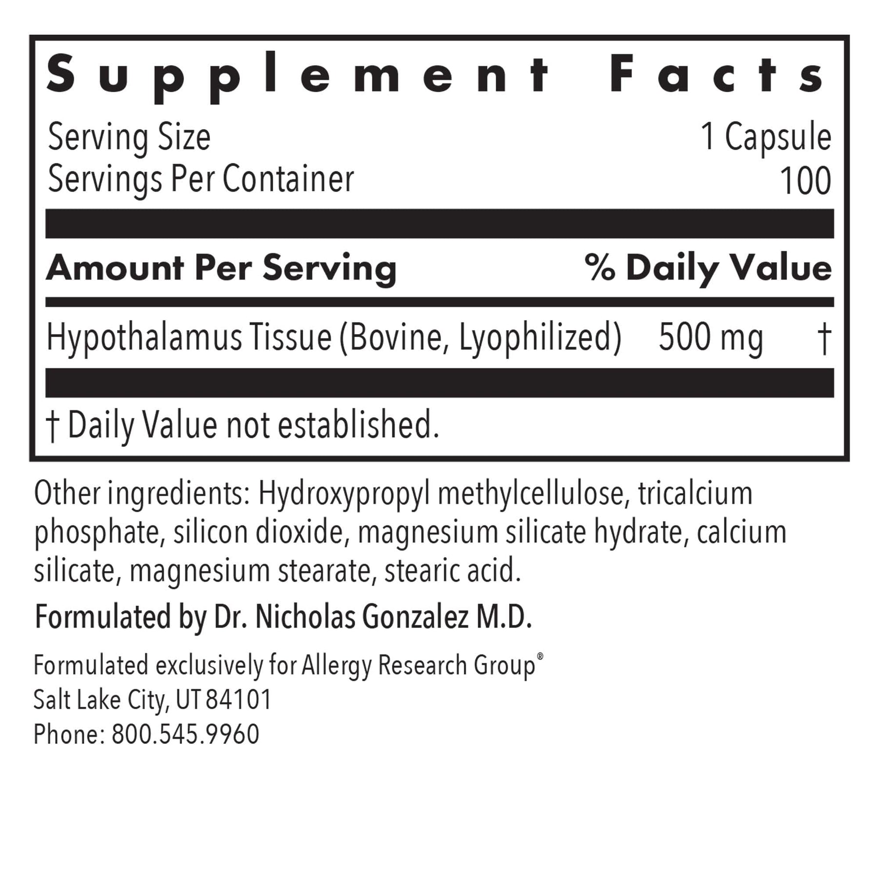 - Original Blended Vitamin & Mineral Supplements – Hypothalamus Supplement - Endocrine Support, Natural Glandular, 500mg Adrenal Support, Adrenal Pituitary, Adrenal Gland Function, Bovine, Lyophilized, Vegicaps - 100 Count by Allergy Research Group