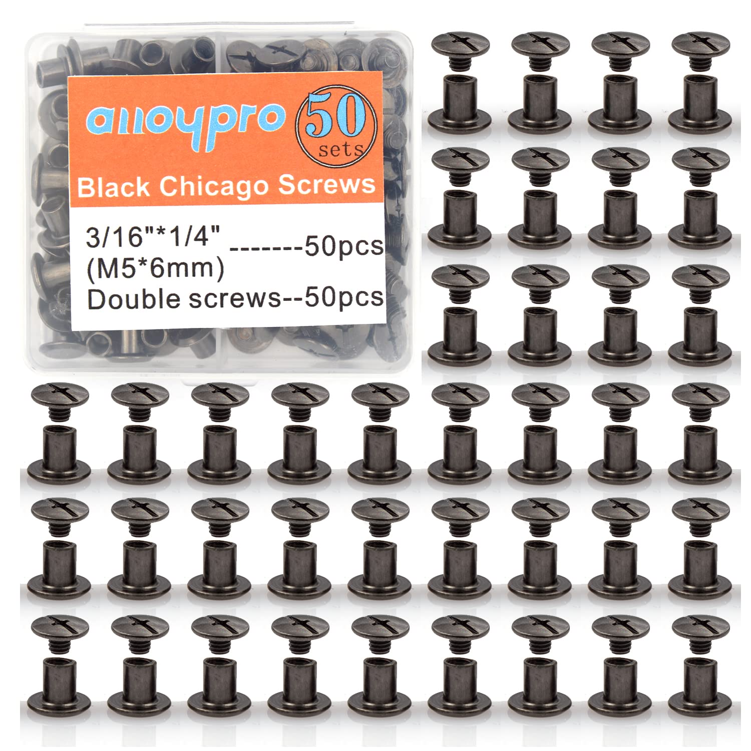 - Original Rhinestones & Decorations – Alloypro 100 Pcs Black Metal Chicago Binding Screws Assorted Kit Nail Rivet Chicago Button DIY Leather Decoration Bookbinding Round Flat Head Stud Screw M5x6mm by ALLOYPRO