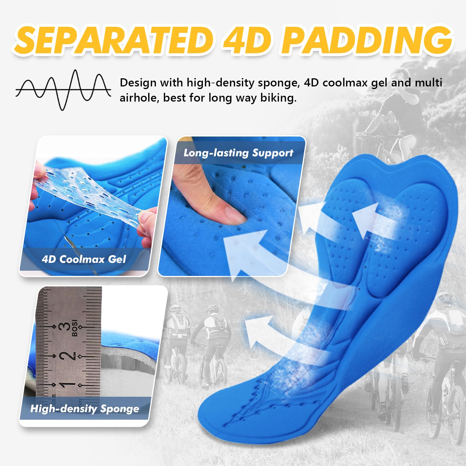 - Separated 4D Padding: Our mountain bike shorts with a precisely measured thickness and a soft 4D gel pad that provides optimal protection and comfort during your rides. The strategically placed breathable holes in the pad ensure excellent ventilation, promoting effective sweat-wicking and breathability. These bike shorts for men can be worn with or without the pad, offering versatility without sacrificing comfort.