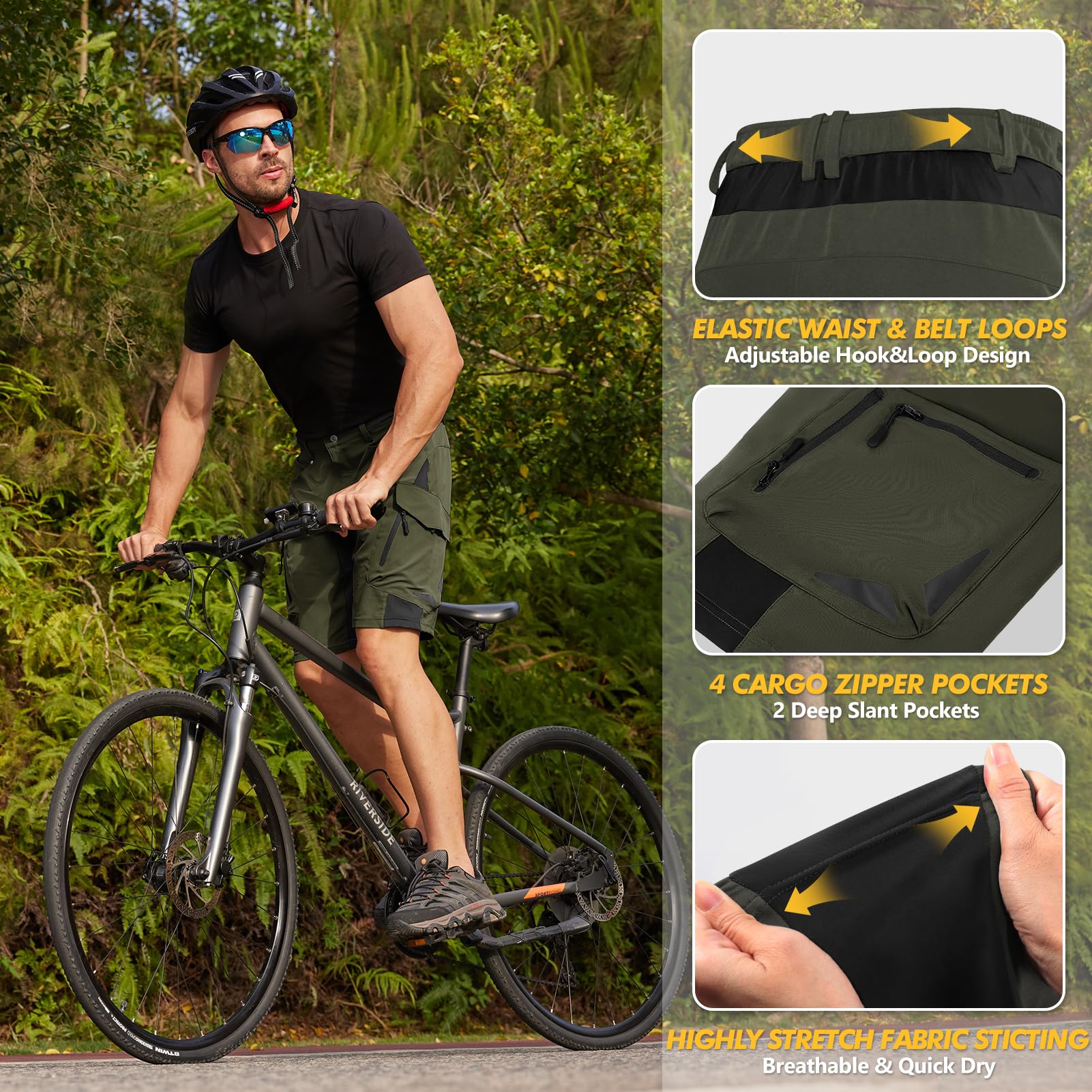 - Original Shorts – Mens Mountain Bike Shorts 4D Padded Bike Shorts Baggy Cycling Biking Bicycle Biker Shorts Loose-fit with 6 Pockets (Green, Large) by Ally
