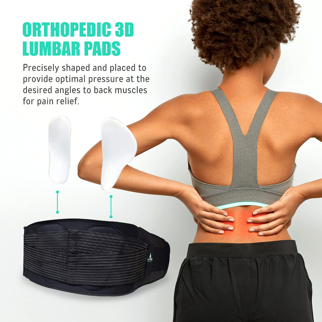 - Orthopedic 3D Lumbar Pads: two medical 3D lumbar pads pecisely placed on either side of spine, provide extra support to lower back during bending and lifting.