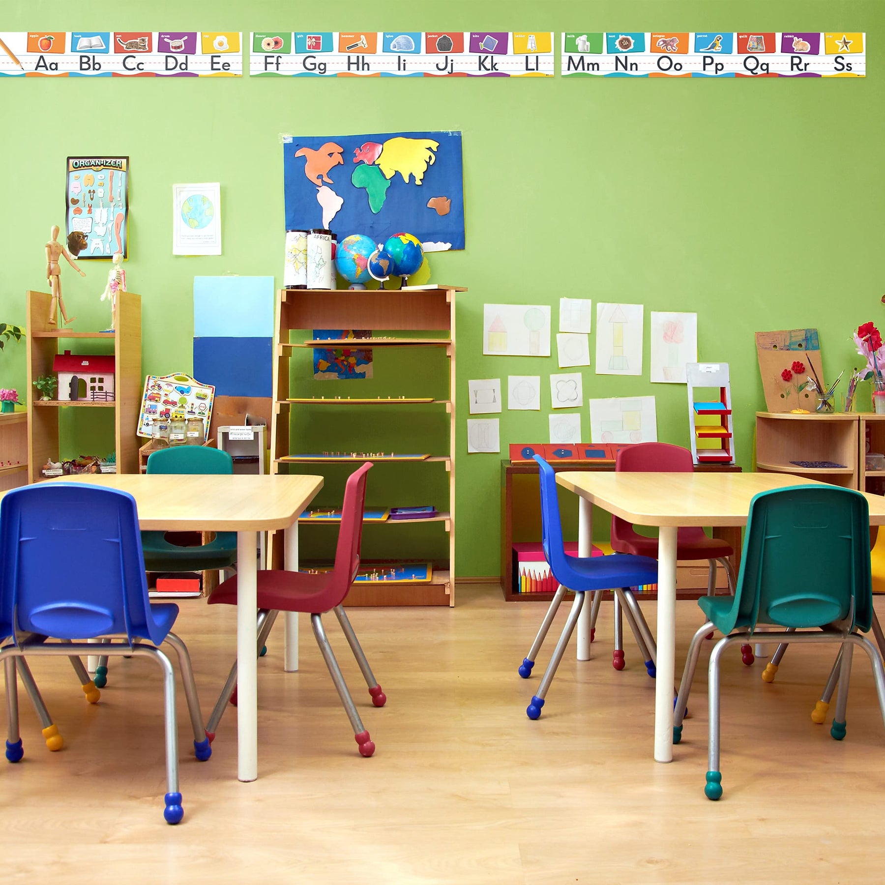 - Clean, crisp, colorful design. Welcome students with border and number alphabet line for classroom wall decorations. Brighten up walls, bulletin boards, chalkboards, classrooms, kids’ bedrooms, playrooms, libraries, daycares and faculty rooms with a colorful kindergarten classroom alphabet train. Watch them master their ABC’s and learn reading foundations, meeting crucial milestones needed for success in life.