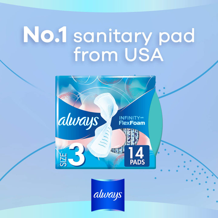Discover the authentic Infinity Size 3 Feminine Pads with Wings, Extra Heavy Flow Absorbency, Unscented, 14 count by Always, part of our Pantyliners collection. Imported directly from the USA and sourced from trusted suppliers, this product is 100% authentic and delivered anywhere in India at the best price.