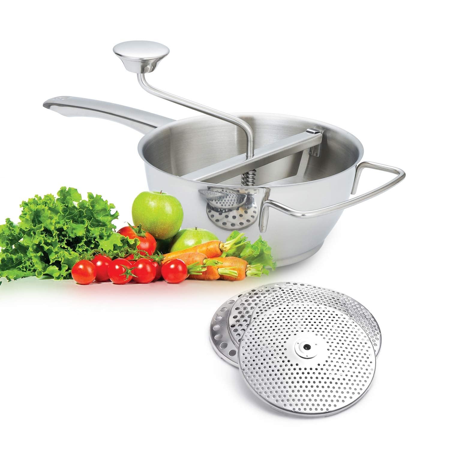 - Original Food Mills – Food Mill 18/10 Stainless Steel Fruit Vegetables Grinder Large 2 Quart Capacity 4 Milling Discs Dishwasher Safe by AlwaysU