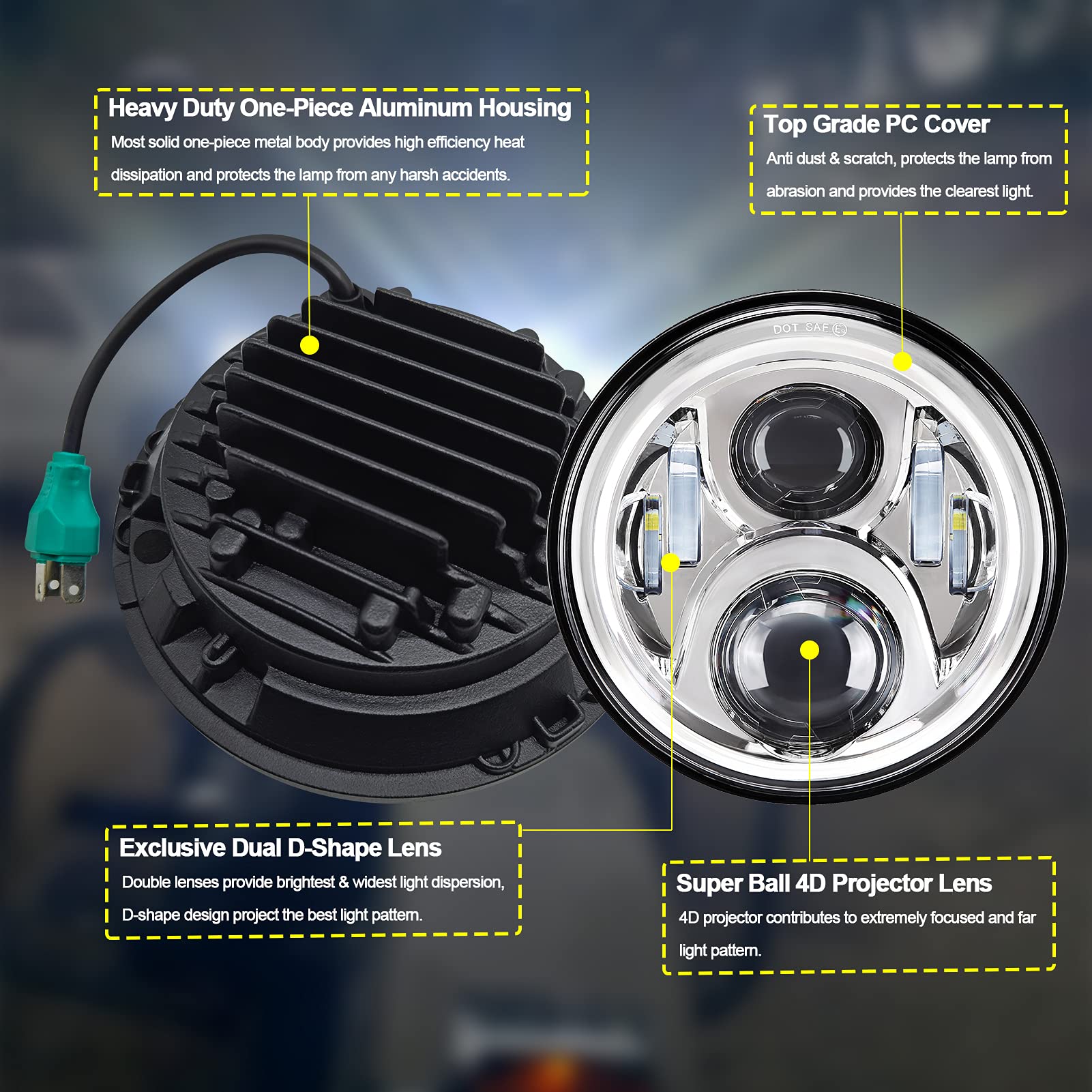 - Original Headlight Bulbs & Assemblies – 7 inch Motorcycle LED Headlight 4.5 Fog Passing Lights DOT Kit Compatible with Harley Davidson Fat Boy Street Glide Heritage Softail Road King Switchback Electra Glide Ultra Classic Chrome by AlyoNed