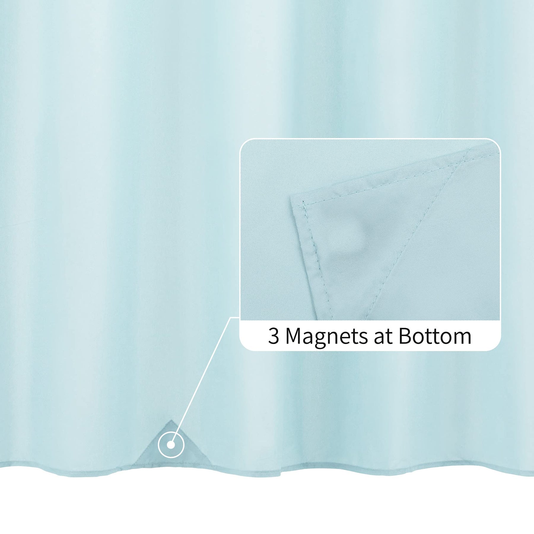 - MAGNET-WEIGHTED HEM: 3 magnets at the bottom of the blue shower curtain to add extra weight, helps keep this fabric shower curtain liner in place and reduce billowing