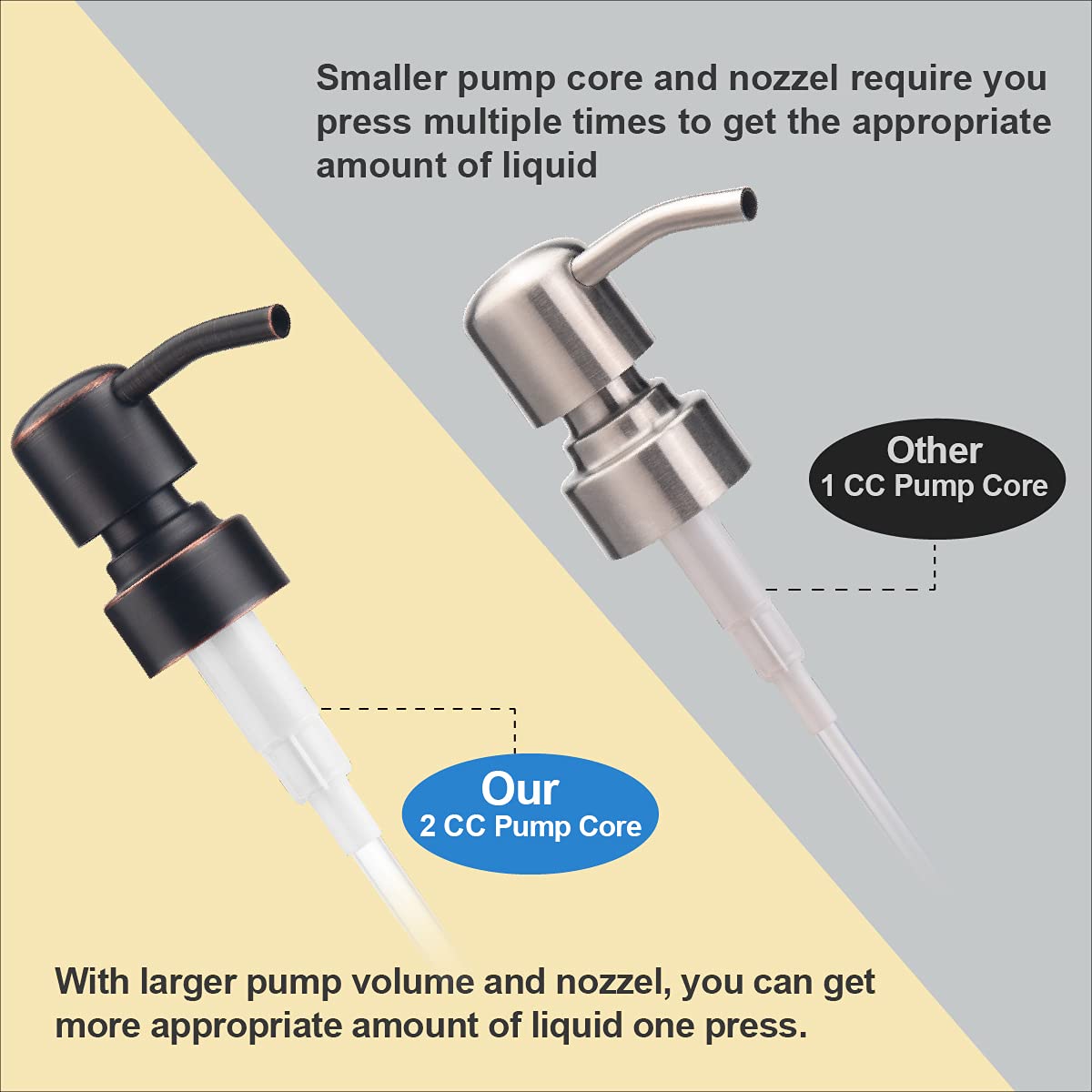 - Oil rubbed bronze pump: Improved oil rubbed pump can effectively avoid corrosion and rust than stainless steel, and deliver liquid smoothly every time without dripping.