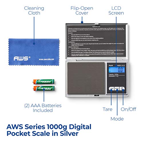 - Original Digital Scales – American Weigh Scales Series Digital Pocket Weight Scale, Lightweight, Accurate Measurement 1kg x 0.1g, (Silver), AWS-1KG-SIL by AMERICAN WEIGH SCALES