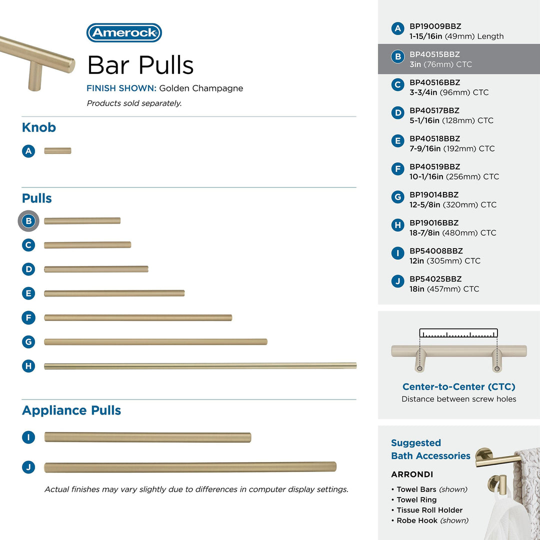- Original Pulls – , Cabinet Pull, Golden Champagne, 3 inch (76 mm) Center to Center, Bar Pulls, 1 Pack, Drawer Pull, Drawer Handle, Cabinet Hardware by Amerock