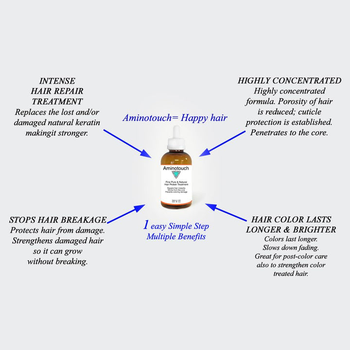- Pure Collagen and Keratin concentrated. Aminotouch is ONE SIMPLE STEP product. Natural Pure Collagen & Keratin Protein coating the hair, a treatment that works from the core to the outer layers of your hair in order to deeply repair dry, damaged, split ends, frizzy and over-processed hair.