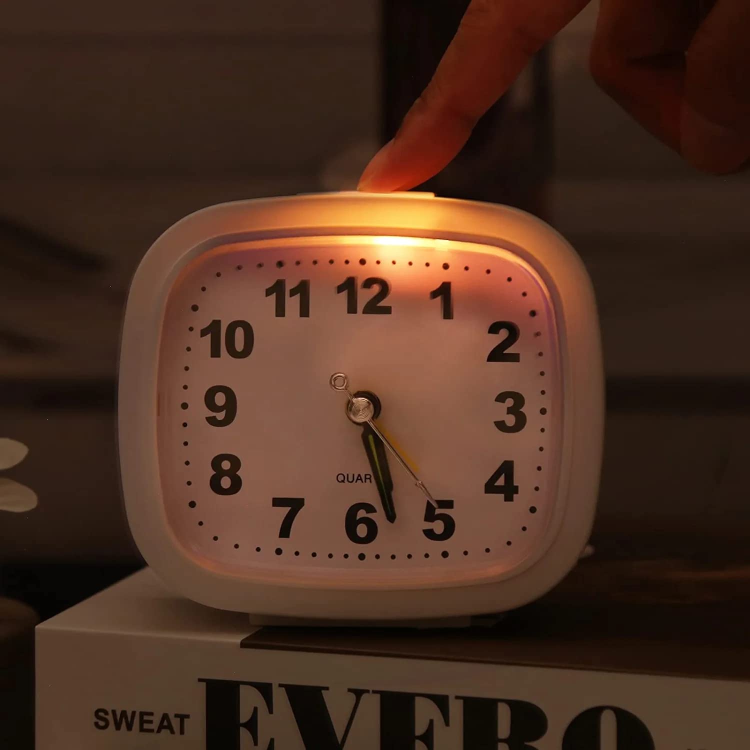 - Completely Silent: 4'' Silent Non Ticking Battery Operated Small Analog Clock, super quiet concise design without annoying tick tock sound. Ensure that you have a quiet and beautiful sleep at night. Press the snooze button to pause the alarm. desk clock analog