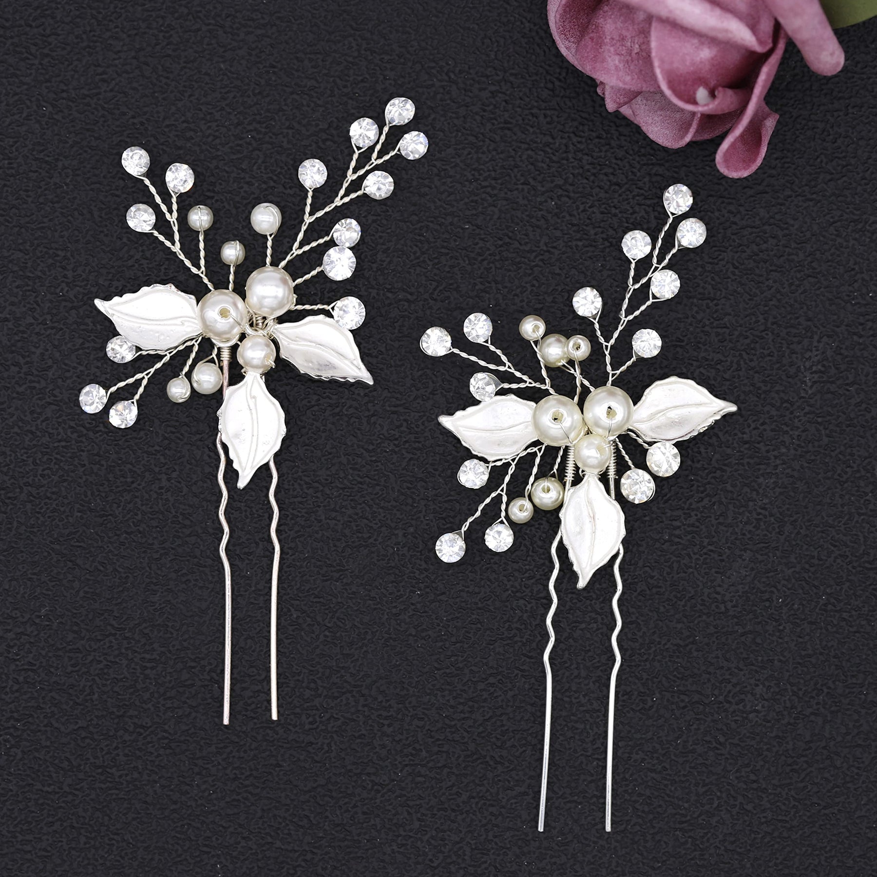 - Ammei headpiece silver: ammei silver wedding headpieces for bride handmade leaves design bridal hair pins with rhinestones and pearls set of 2 (silver)