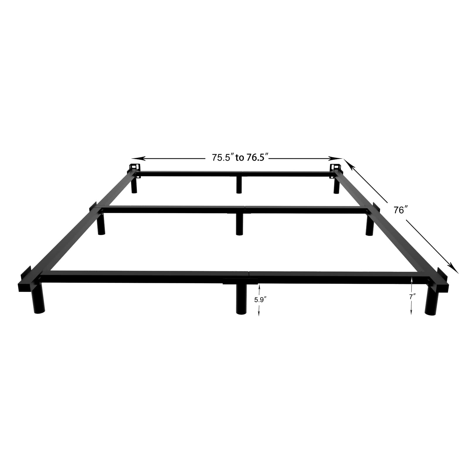 - DIMENSION: (W)75.6-76.5 inche x (L) 76 inche x (H) 7 inche, king mattress foundation frame with 6 inch of under bed storage.