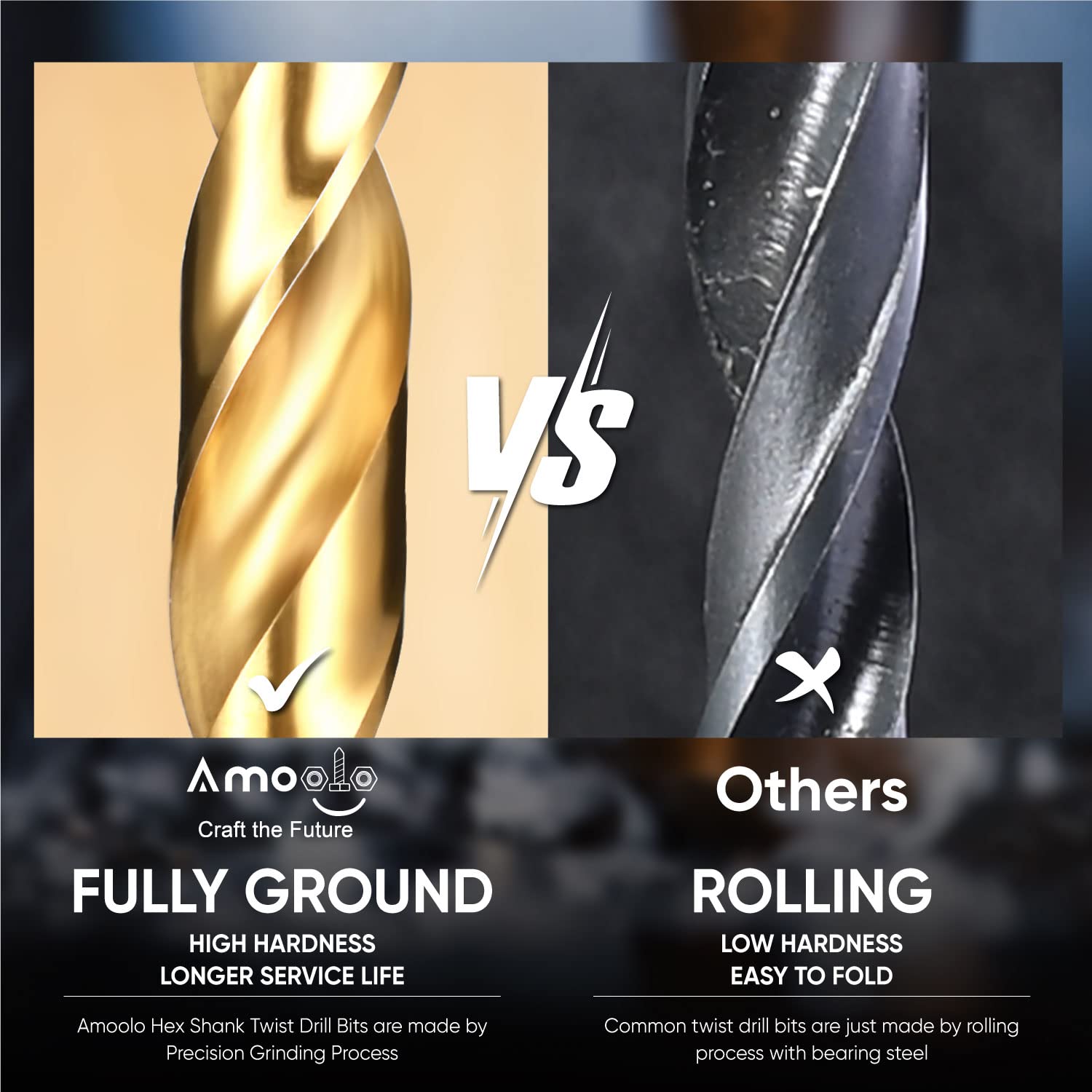 - Original Hex-Shank Drill Bits – Hex Shank Drill Bit Set (13Pcs Set+3 Pcs Free), Premium 4341 HSS Titanium Impact Hex Drill Bits for Wood, Steel, Metal, Plastic, Quick Change Design (1/16 -1/4 ) by amoolo