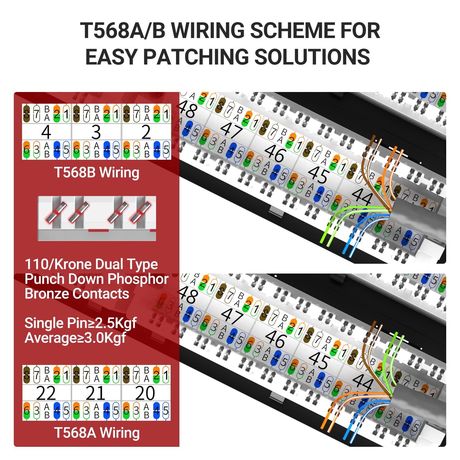 - Consistent with TIA/EIA 568 industry specifications, and following T568A/B wiring scheme, this patch panel maximize the network performance and can keep up with the growing changes in the network