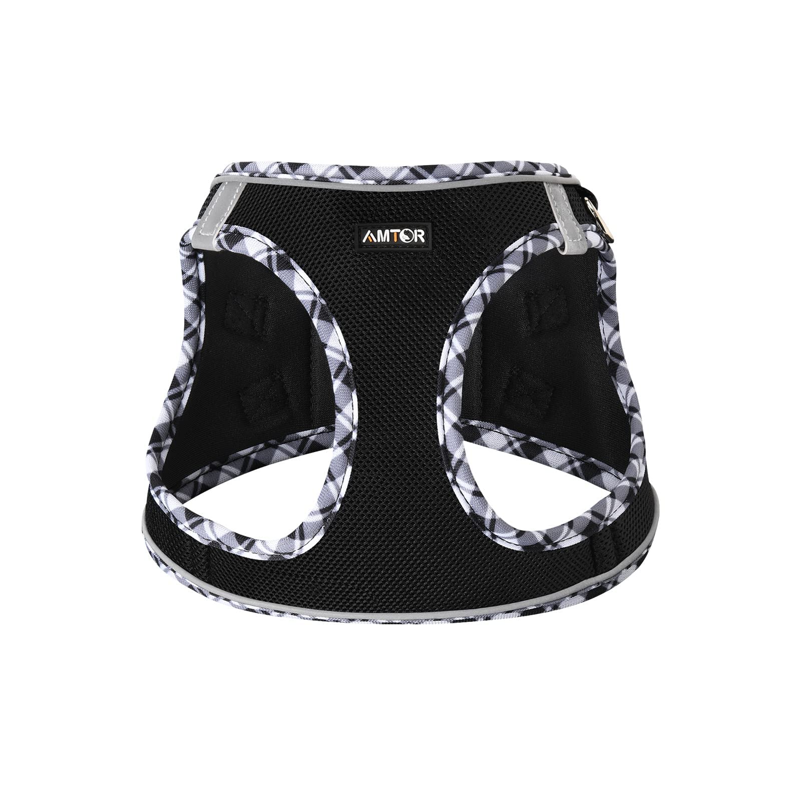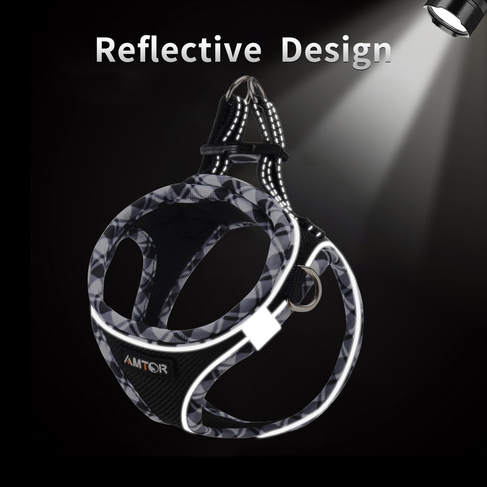 - Reflective dog harness - AMTOR small dog harness with Magic Tape,buckle and double D-rings work together protect your pet in three layers of security. The 360° highly reflective strips provide good visibility in the dark