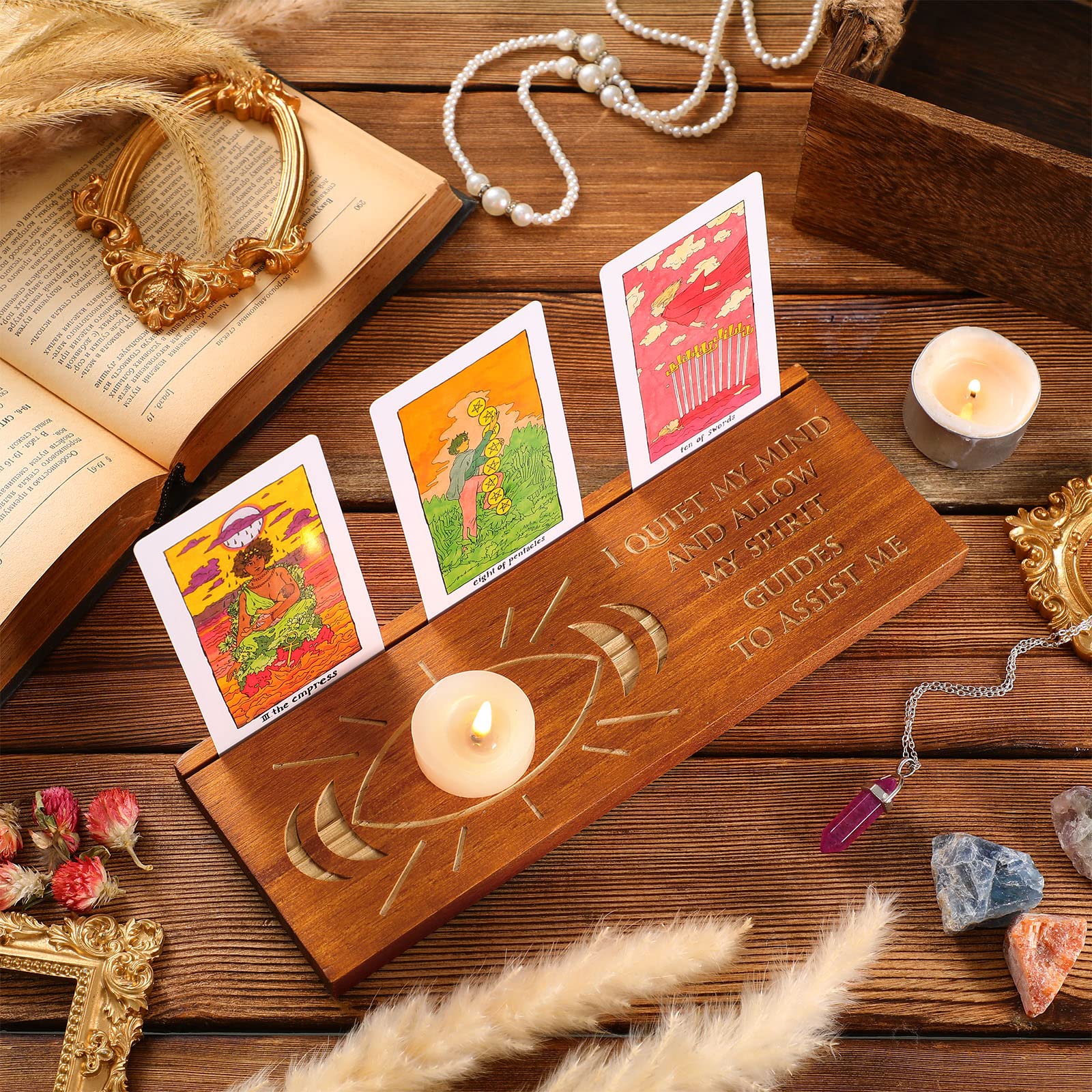 - Original Fortune Telling Toys – Wooden Tarot Card Stand Moon Phase Tarot Card Holder Stand Rectangle Card Display Stand Lenormand or Oracle Pagan Altar Supplies Tarot Card Decor for Divination Tools by Amyhill