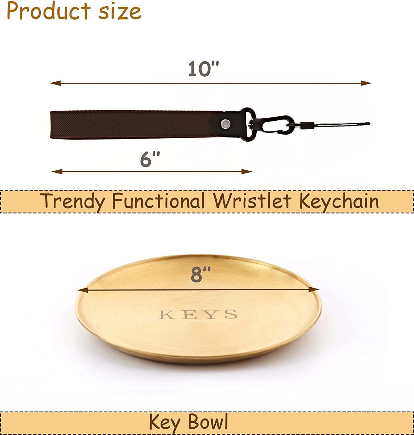 - MODERN DESIGN: The key holder bowl is made of stainless steel by electroplating, simple but fashionable. Suitable for entryway decor or entryway storage. The wrist lanyards made of premium smooth material, feel great to wear -even on bare skin! good match for everyday use.