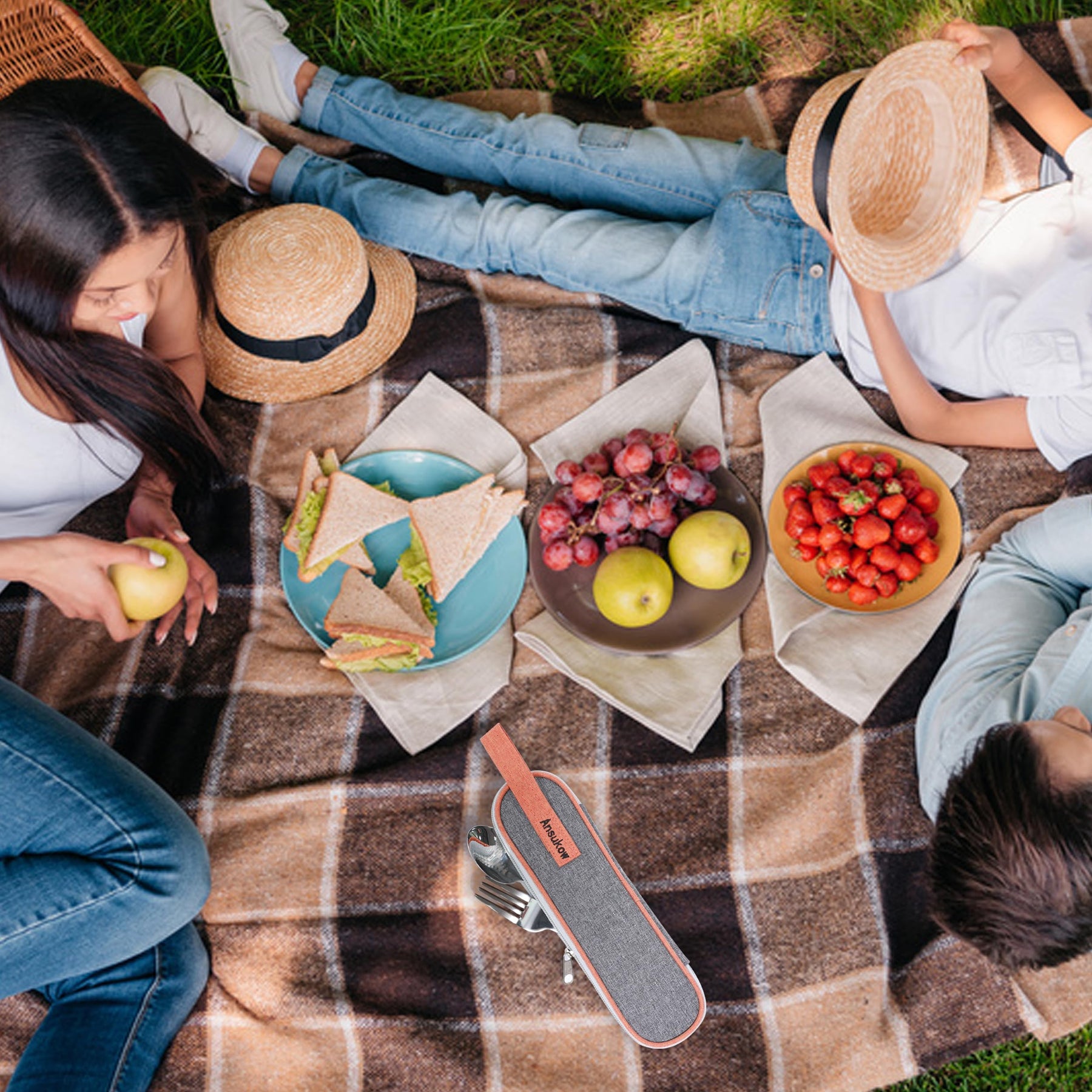- Portable Utensil Set with CaseThe reusable Utensil with case is small in size and light in weight, and fits easily into backpacks and pockets. The included tableware is sufficient for daily use. Suitable for working ,school,taveling ,flight, workplace, eating on the go ,picnic ,camping,daily use,etc. The portable cutlery set is easy to clean.The dishwasher safe.