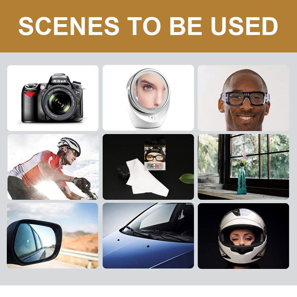 - MULTI-FUNCTIONThe anti-fog lens wipes cloth can be use for any lenses,like glasses, goggles, helmets, camera lenses, car rearview mirrors, bathroom makeup mirrors,screen, windshields, binoculars and more.Our products have significant anti-fogging effects and meet various anti-fog needs.