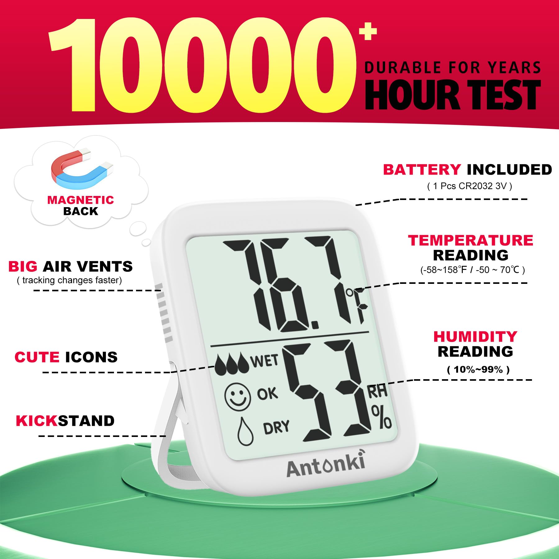 - Original Indoor Thermometers – 2 Pack Room Thermometer for Home, Digital Temperature and Humidity Monitors, Indoor Hygrometer Sensor, Humidity Gauge, Humidity Meter for Baby Room, Terrarium, Incubator, Greenhouse by Antonki