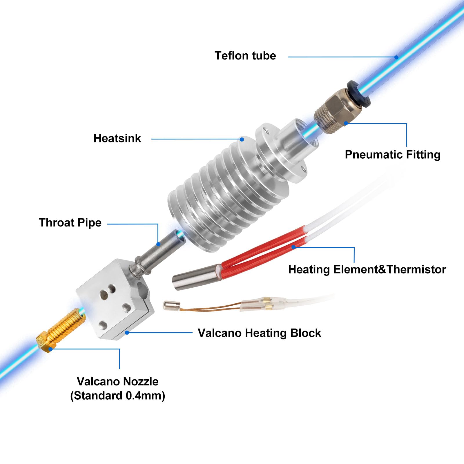 - Original 3D Printer Accessories – ANYCUBIC Vyper/Kobra Max/Kobra Plus 3D Printer Hotend Replacement Volcano V5 J-Head Quality Brass Nozzle 24V40W Ceramic Heating Cartridge Element Supports High Speed Printing by UniTak3D